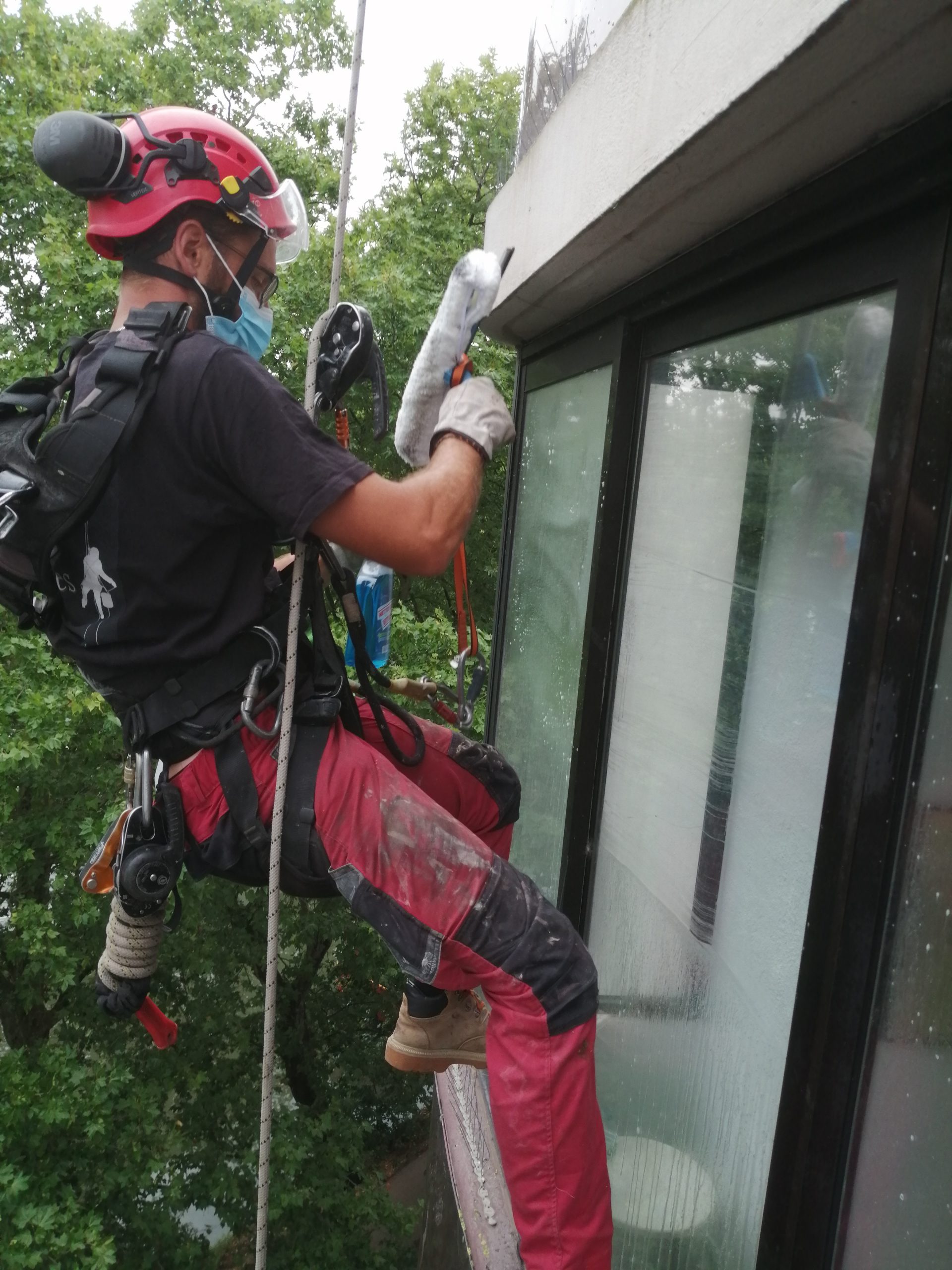 Ainsi, sur ses cordes, en toute sécurité il intervient aussi bien chez les particuliers, les copropriétés, les sites industriels, les collectivités publiques territoriales.
